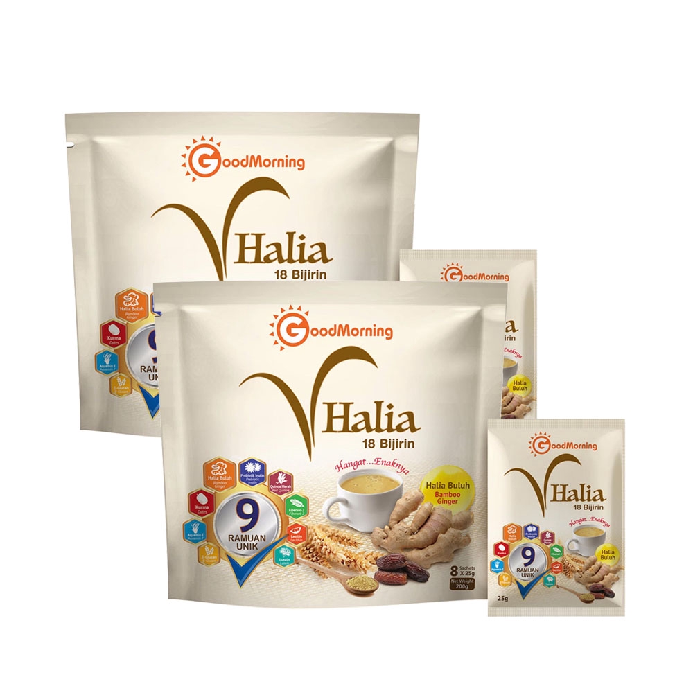Halia good morning sachet. Medical Beauty Personal Care. Good Morning VGrains 1kg EXP072023 VHalia 600g x 2 Tins EXP032022 FOC 2 Shakers 2 Sachets Nutritional Drinks Goodmorning Halia Ginger RM11080 RM12000. GoodMorning VHalia 18 Grains is a nutritious ginger-grains beverage made from selected 18 types of premium grains.